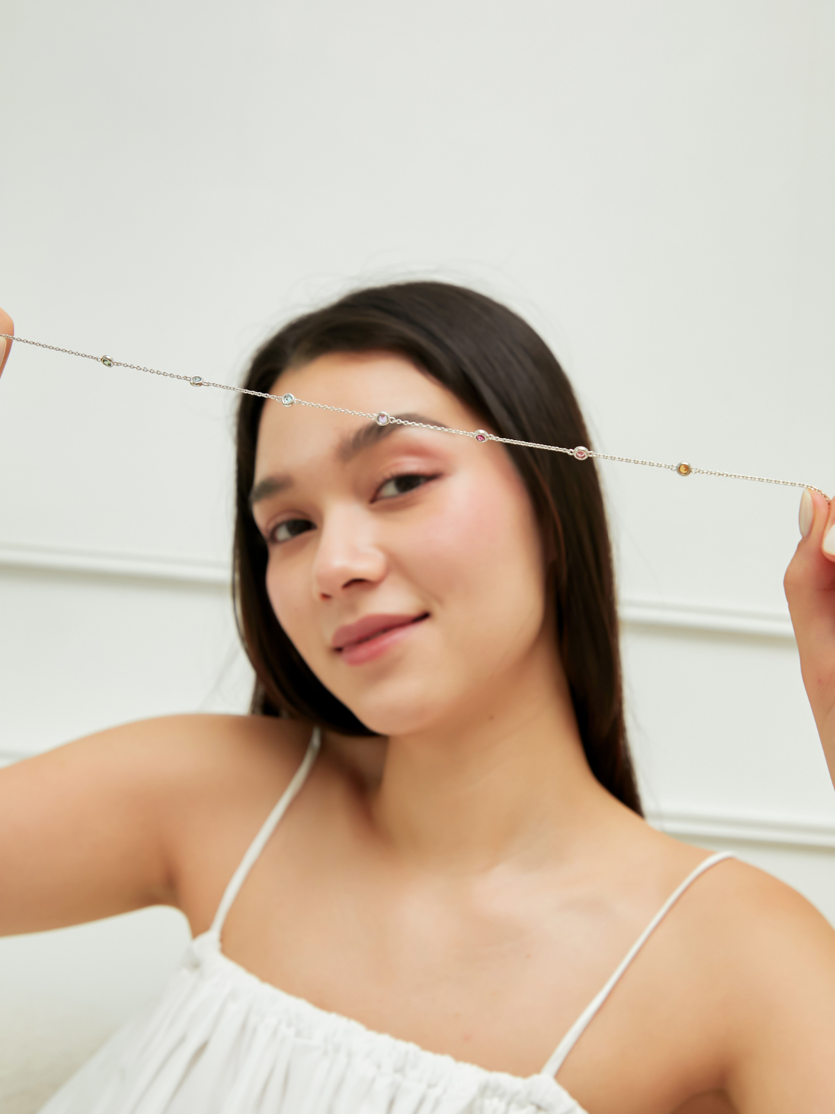 - Natural gemstones 3.5 mm each (green tourmaline, sky blue topaz, Swiss blue topaz, amethyst, pink tourmaline, peach tourmaline and citrine)