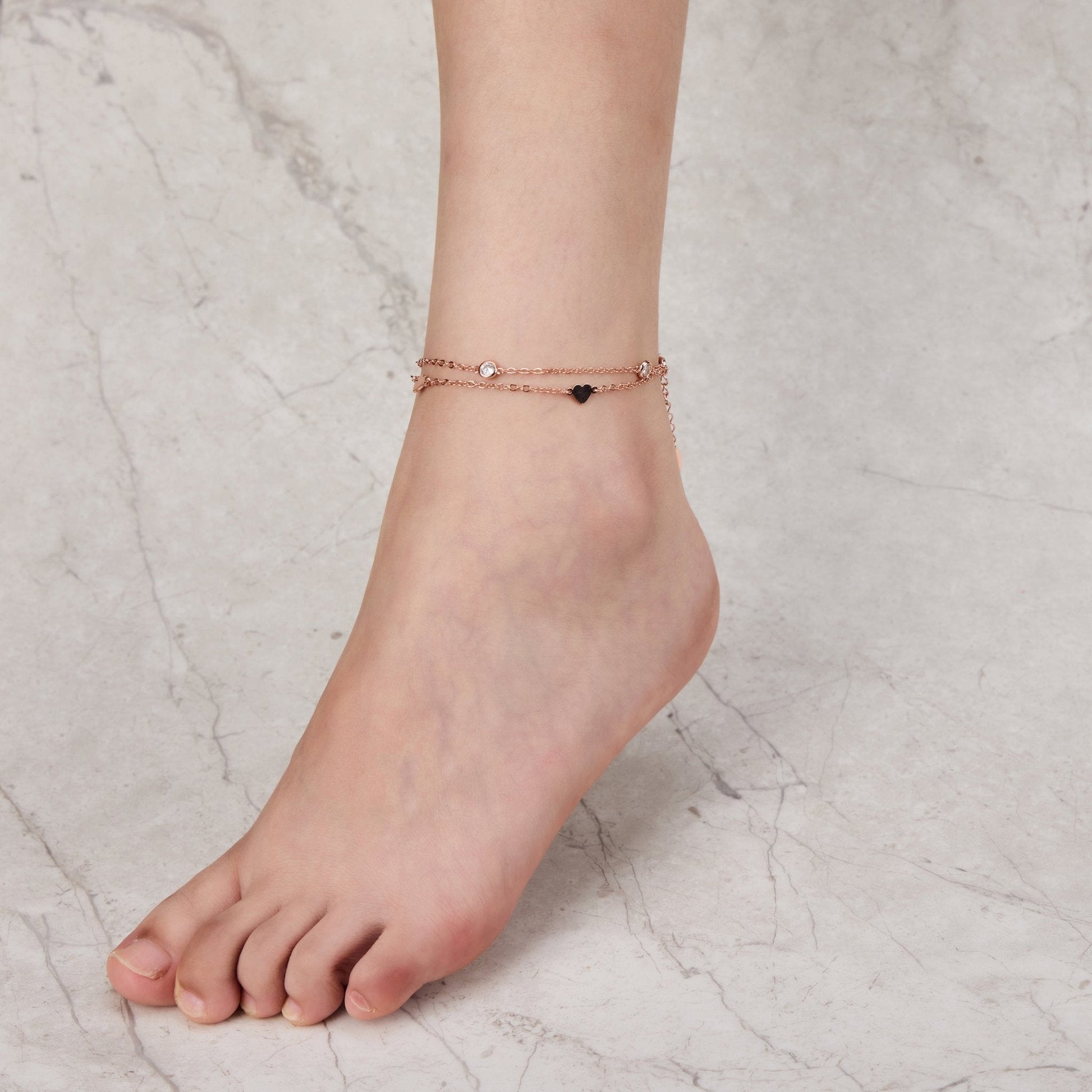 Rose Gold Plated Layered Heart Anklet Created with Zircondia® Crystals