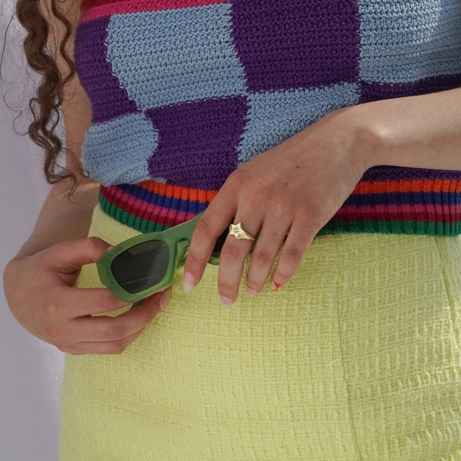 Shine like the brightest star with this chunky signet ring, part of our Retro Charmed collection, this design is bursting with nostalgia! The whimsical shooting star signet features a sweet sparkling stone engraved with starburst details for a dazzling finish.
