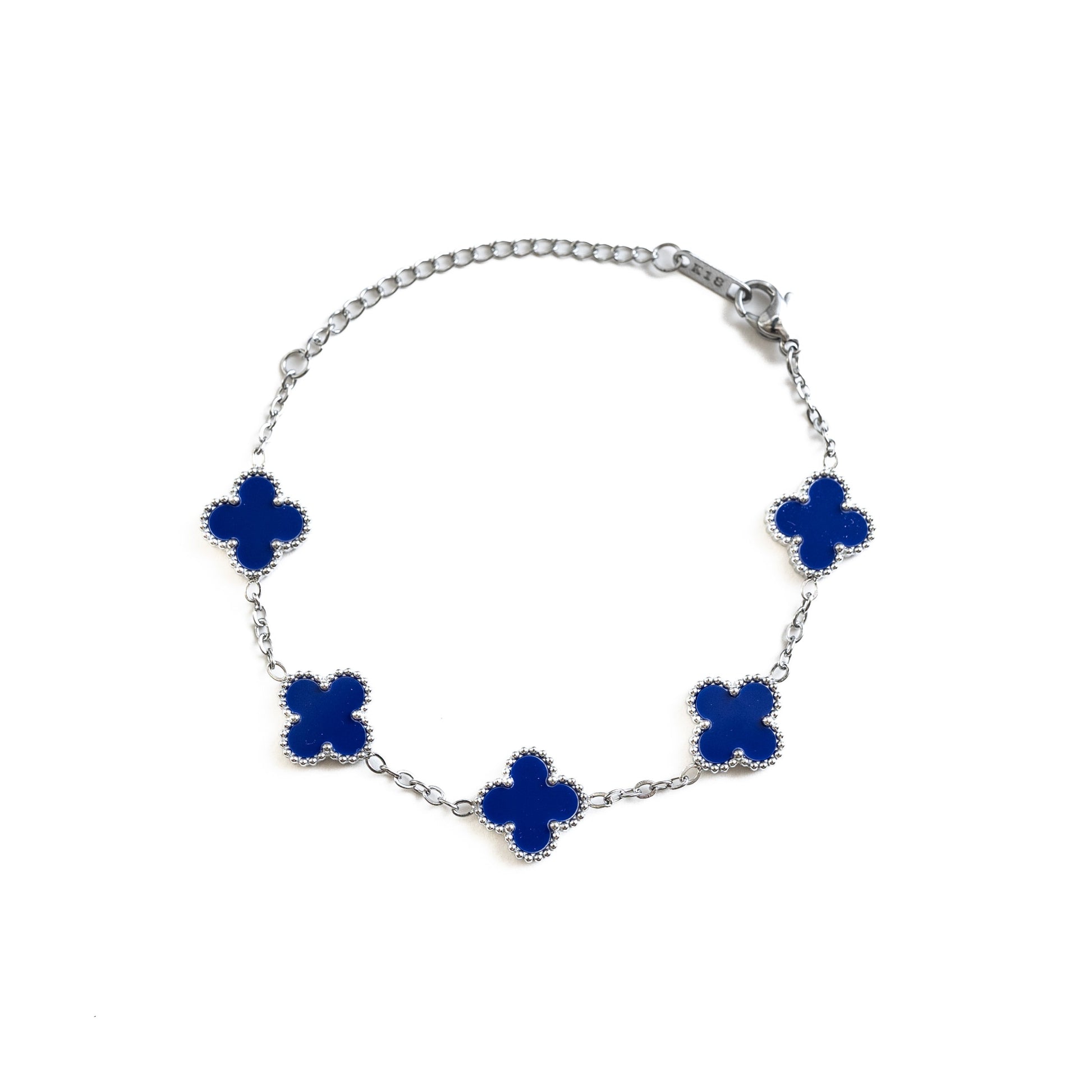 Elevate your style with our Silver Clover Bracelet in a beautiful navy colour. This stunning piece features a delicate silver clover charm that will catch every eye. Perfect for adding a touch of elegance to any outfit.