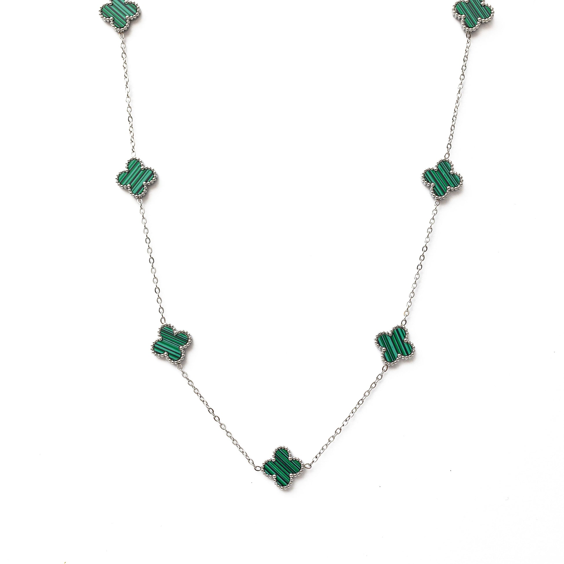 Silver Clover Necklace (Green)