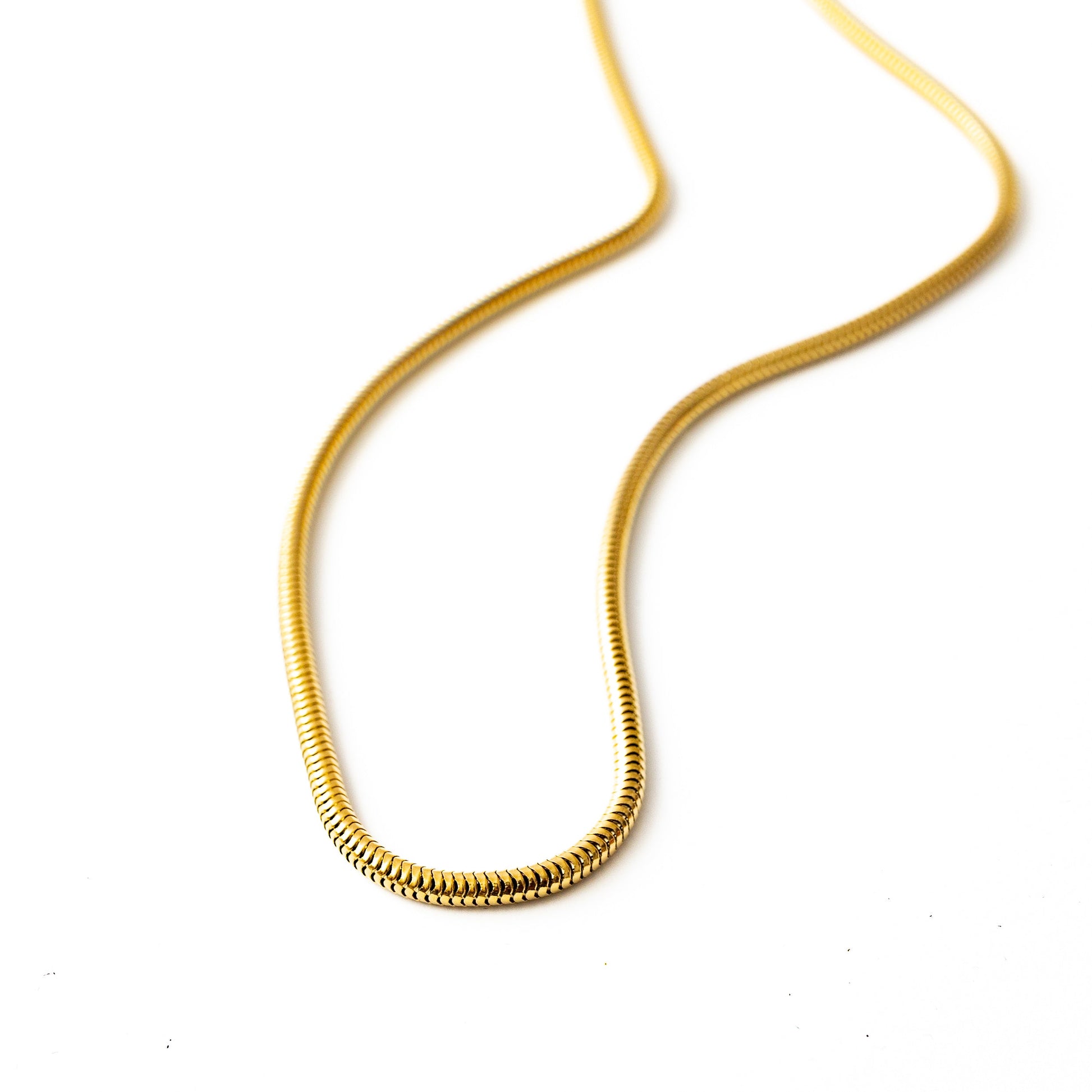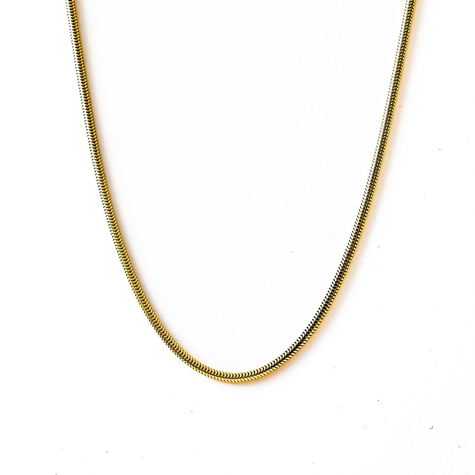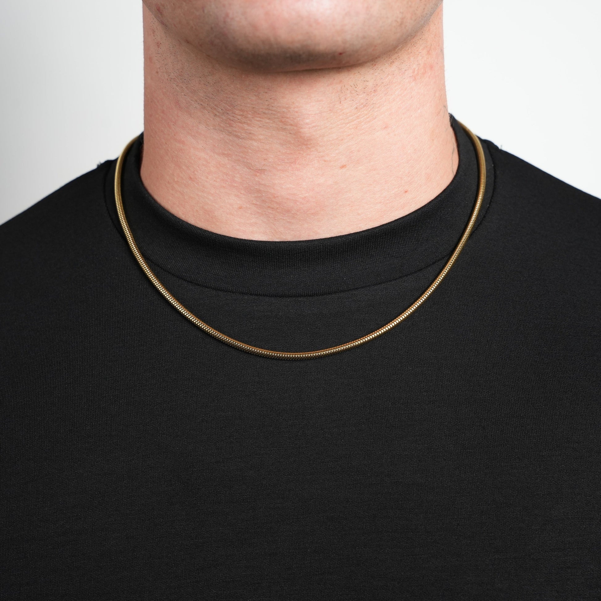 Elevate your style with our mens Snake Chain! Made of shining gold, this 3mm chain is the perfect accessory for any occasion. Experience the luxury of a high-quality chain that effortlessly adds a touch of class to your look. Upgrade your wardrobe with our Snake Chain today!