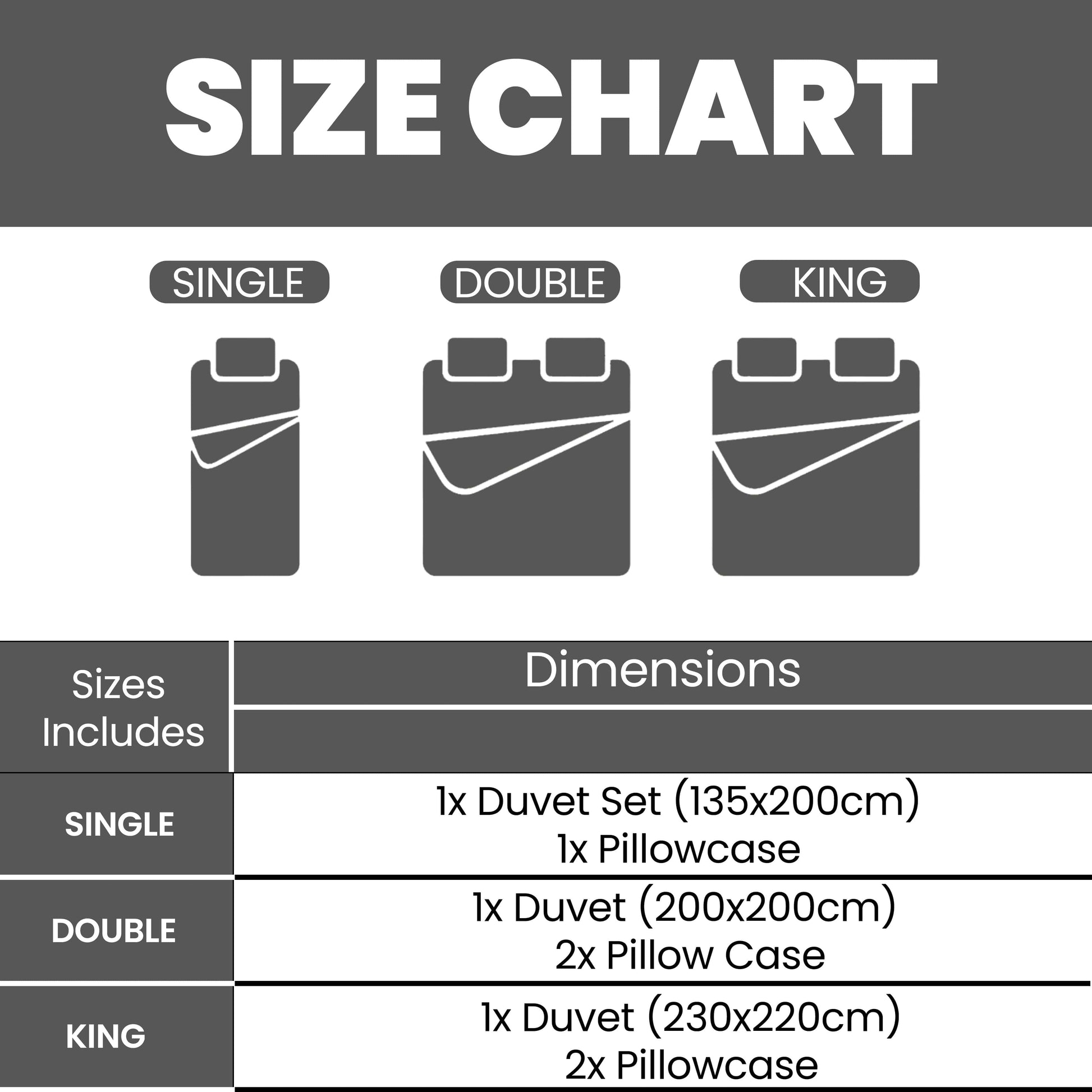Single Duvet Set: 1x Duvet Cover (135cm x 200cm) + 1x Pillowcase