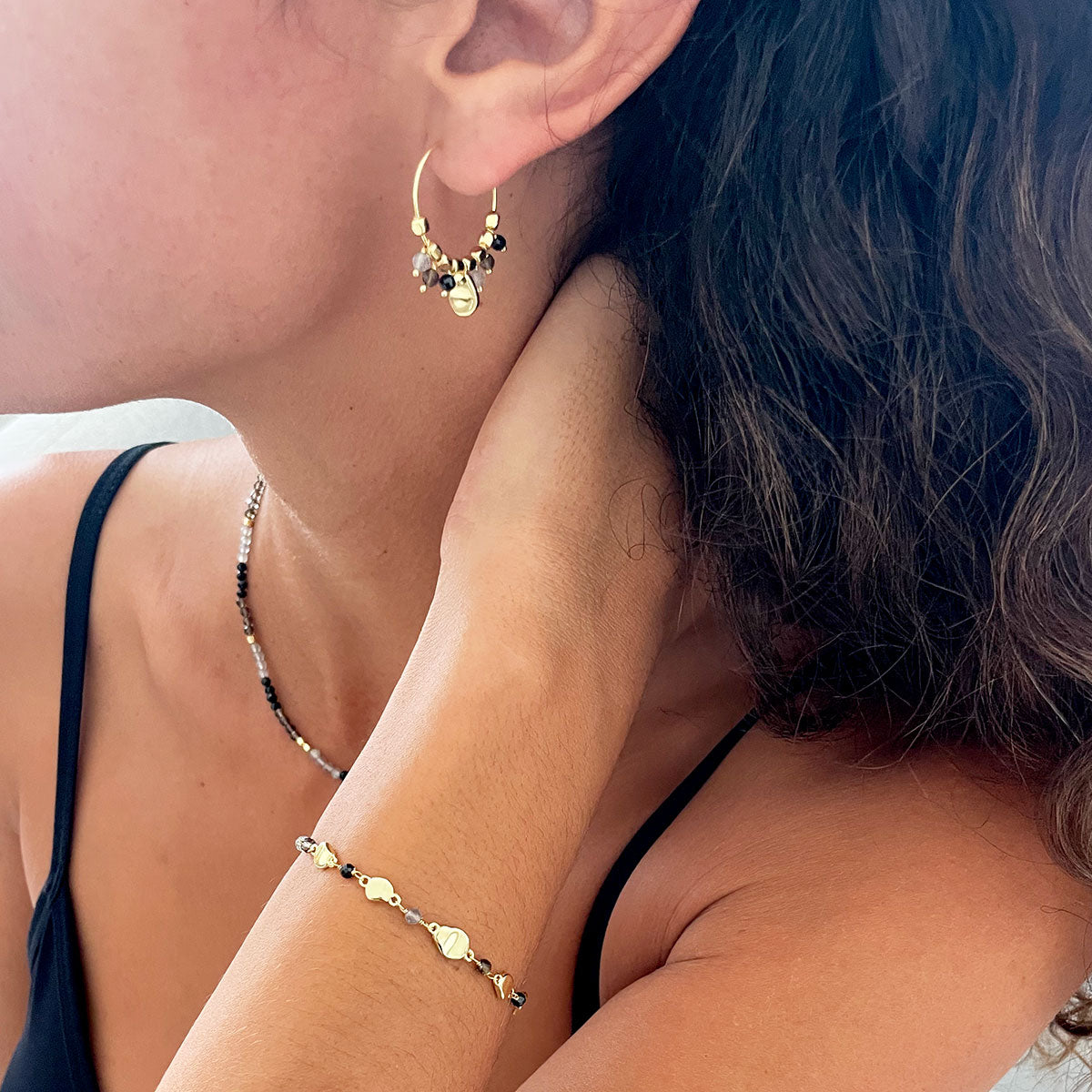 Sofia Nugget Bracelet Black Onyx, Smoky Quartz & Labradorite