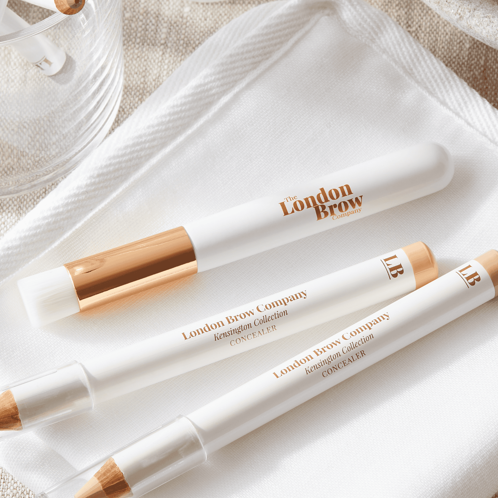 1 x white and gold London Brow soft bristle lash cleansing brush