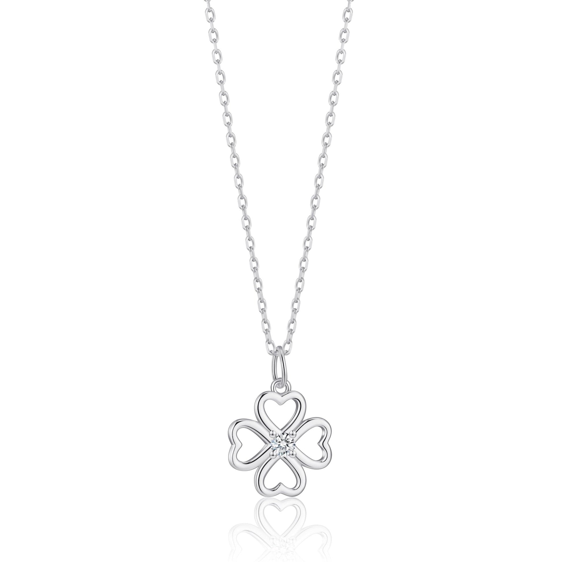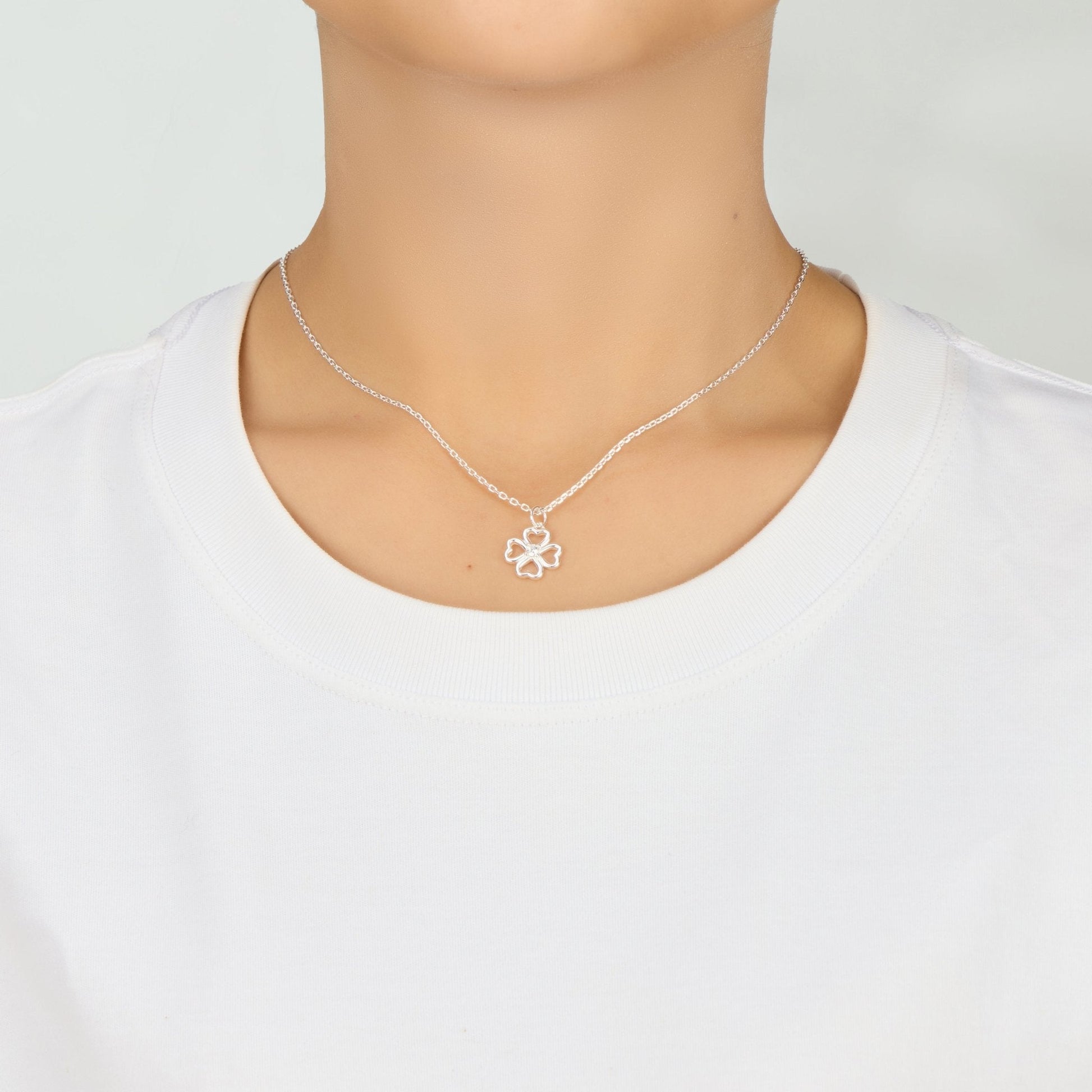 Sterling Silver Clover Necklace Created with Zircondia® Crystals