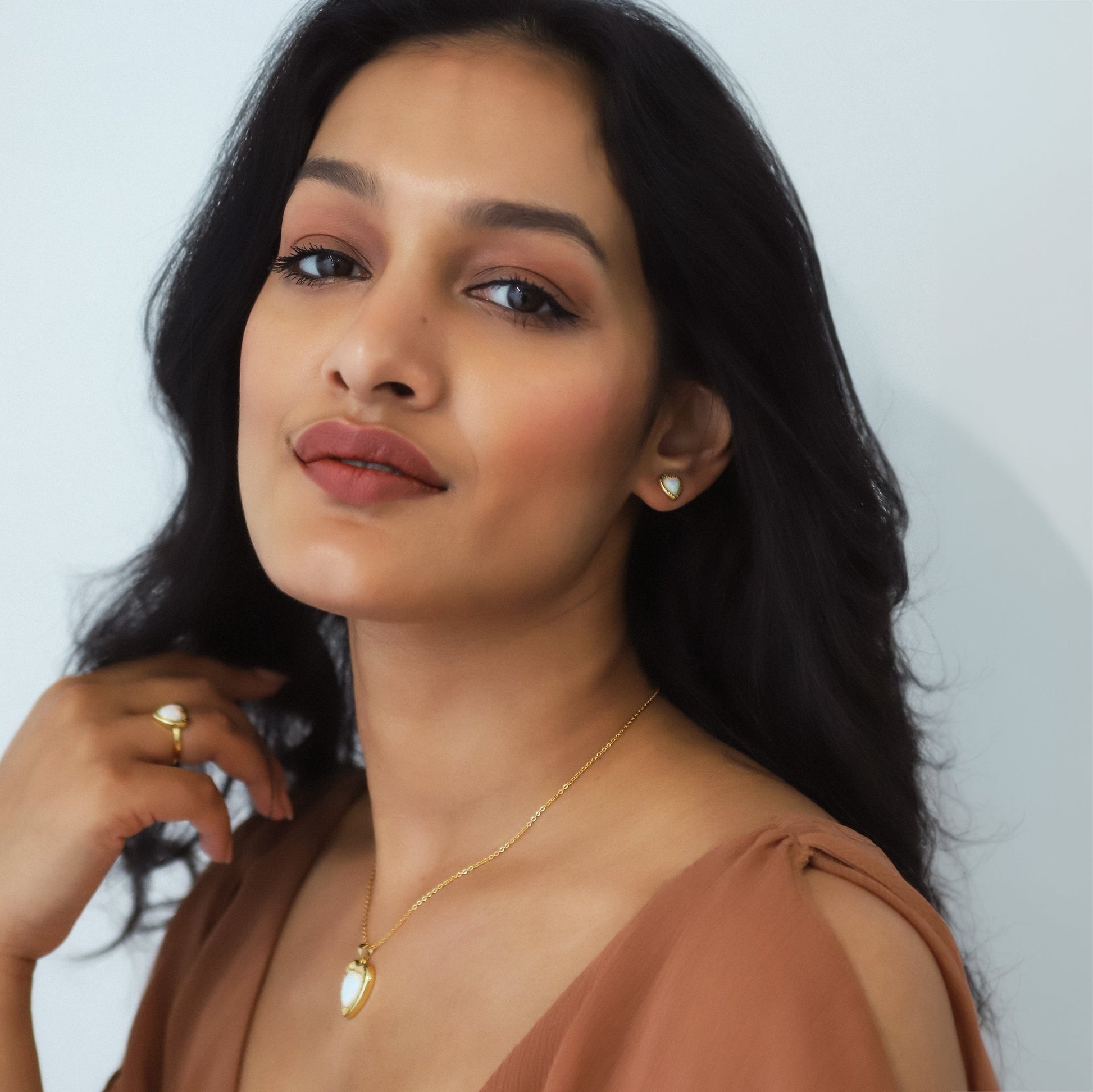 Pair with the Cora Opal Heart Necklace and/ or the Adore huggie hoops to complete the matching look.