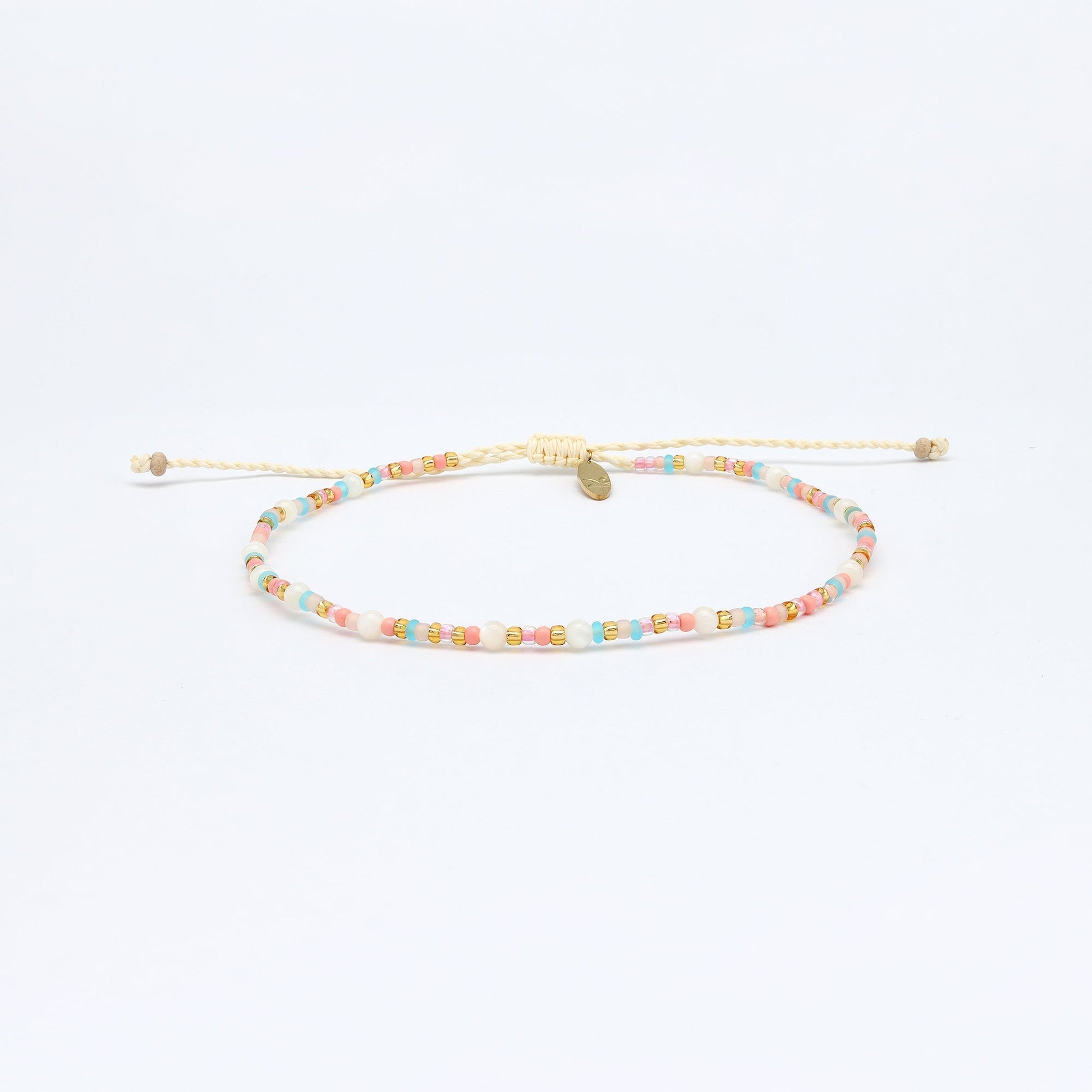 Inspired by sun-filled days, the Surya Anklet - named after the Indonesian word for sun - shines in tones of gold, soft pink, and turquoise, dotted with glowing white troca shell beads. It’s the perfect mix of beachy and boho, made for stacking or wearing solo as your everyday sunshine 🌺✨