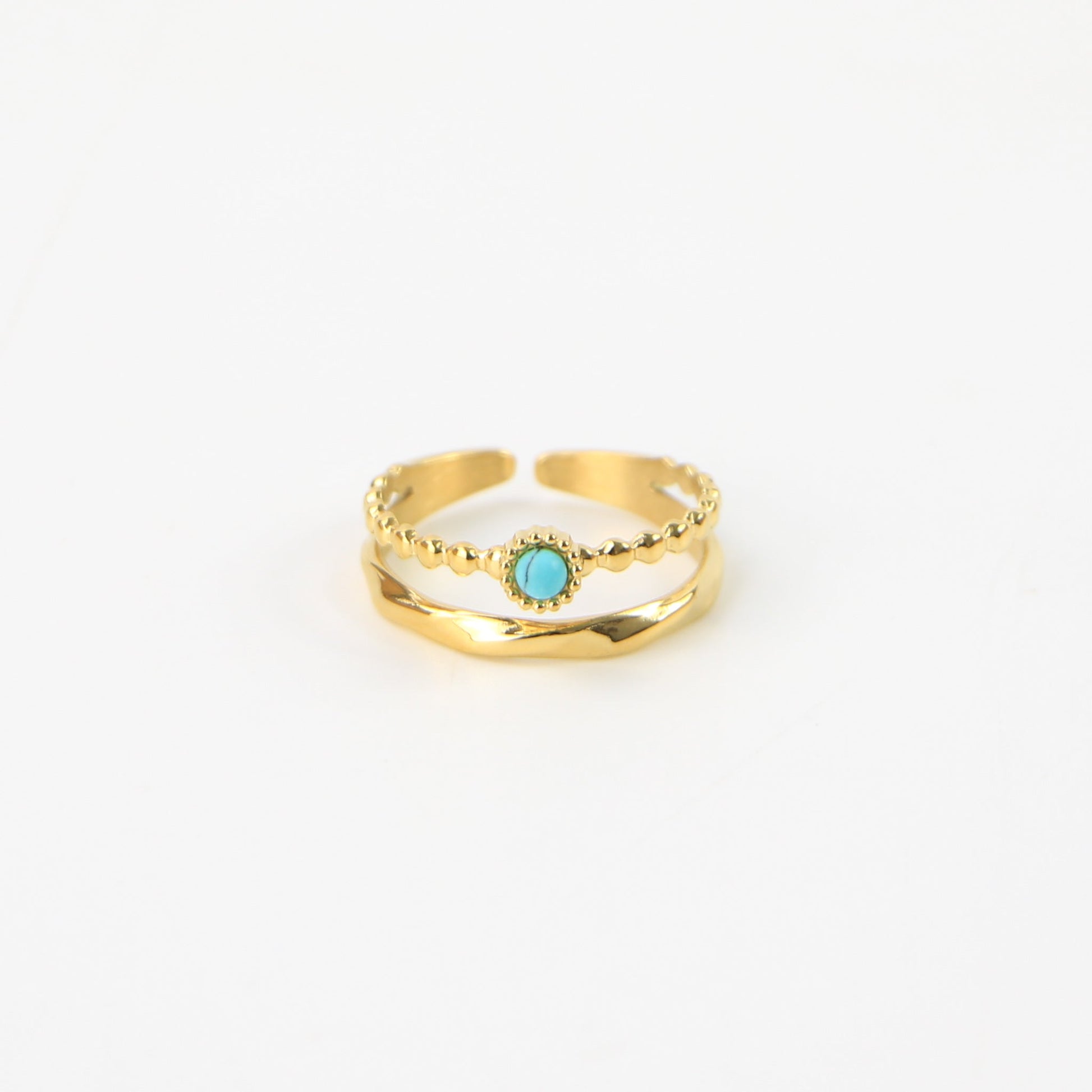 Experience double the style with our Turquoise Stone Double Ring! With an open ring design, this stainless steel ring fits all sizes and features a beautiful turquoise stone that is both waterproof and tarnish-free. Two rings in one, for a unique and versatile accessory. A perfect gift for her!