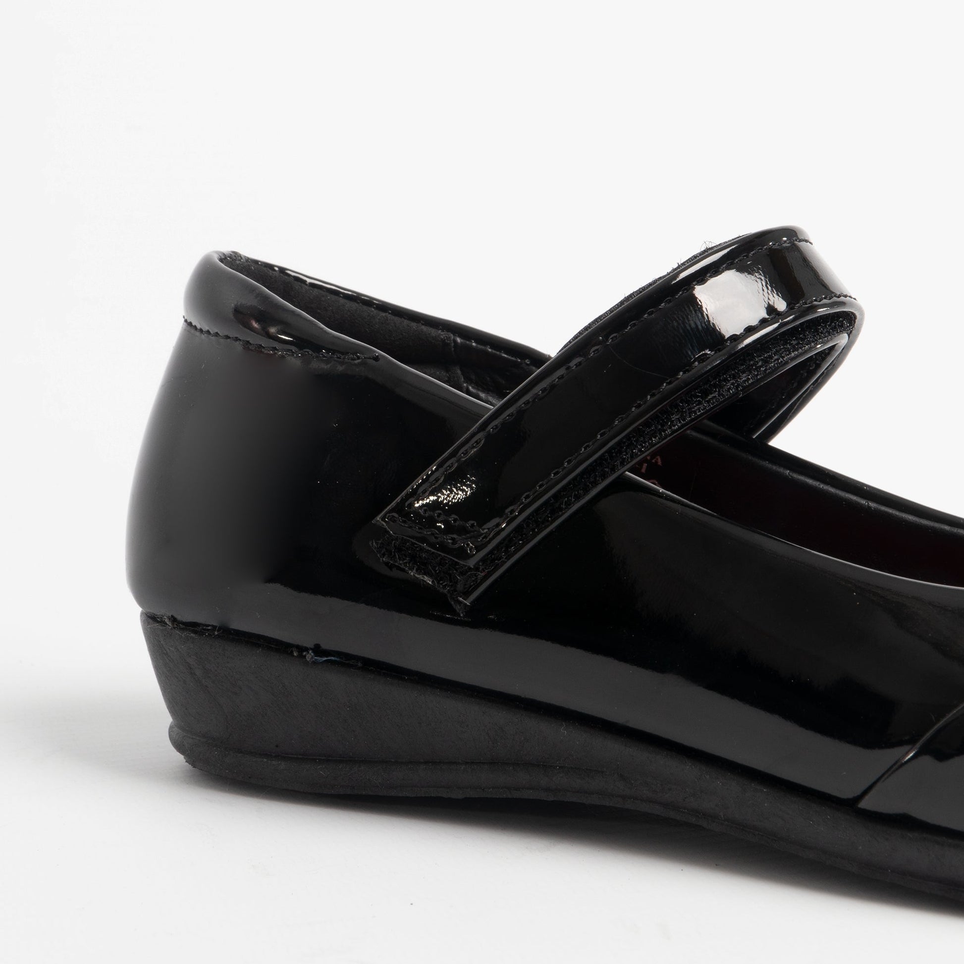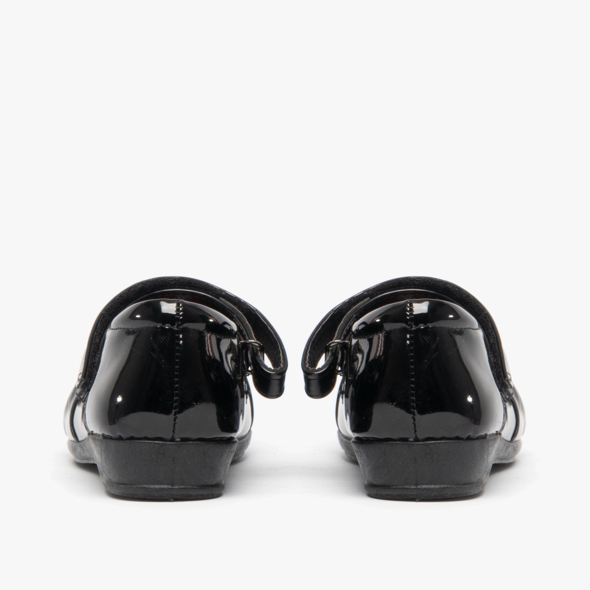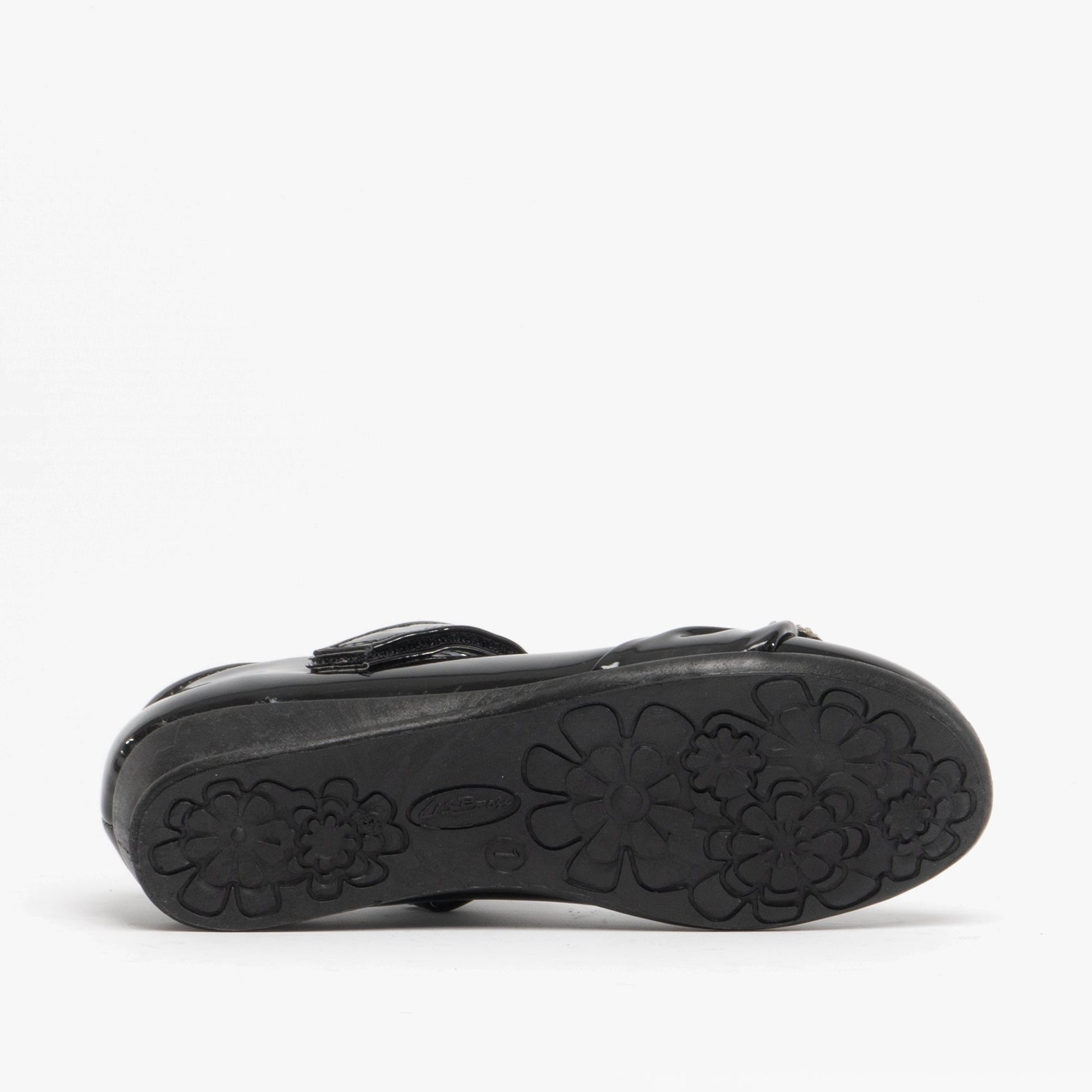 US Brass PAIGE II Girls Touch Fastened Diamante Bar Shoes Patent Black