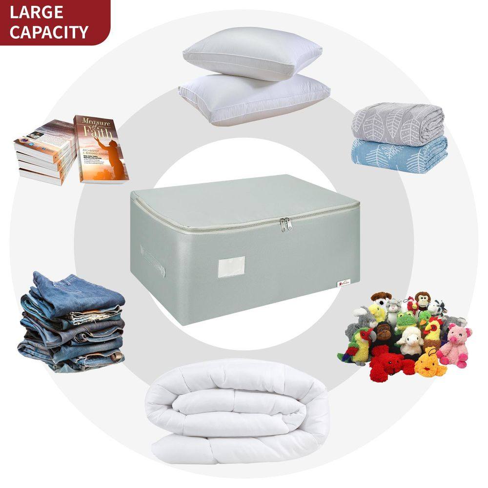 ENORMOUS CAPACITY: Comes in a set of 3 bags. 50L (22 x 13.8 x 9.8 in) 105L (27.6 x 19.7 x 11.8 in) Clothing, blankets, pillows, comforters, and other household goods can all be stored in this huge storage bag. These can also be used to hold shoes, toys, small electronics, stationery, towels, and groceries, among other things. These storage bag organizers will come in handy for your household.