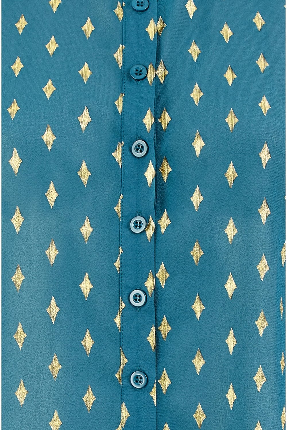 Yumi Teal Diamond Foil Print Top With Ruched Cuff